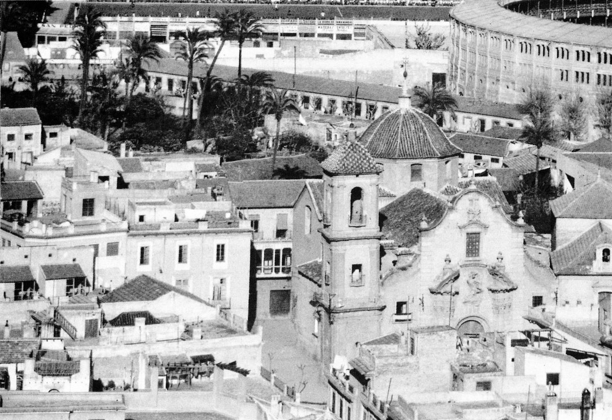 El templo no se construyó, pero en la colección de José Crespo, digitalizada recientemente por el Archivo Municipal de Murcia, encontramos dos imágenes del proyecto: